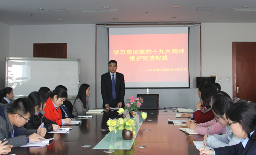 为认真贯彻落实党的十九大精神,增强法治观念,推动全社会树立宪法意识,扎实做好国家宪法日宣传活动,12月18日,ky体育官网入口组织开展以“学习贯彻党的十九大精神,维护宪法”为主题的相关会议。ky体育官网入口中层管理人员及党支部全体成员出席会议。