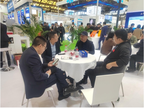 ky体育官网入口副总经理、磐合科仪董事长黎桥(左二)亲临展会现场指导工作