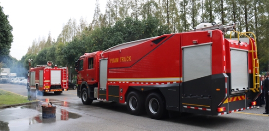 本次消防演习与昆山高新区消防中队联动,消防车和消防员也抵达了公司现场,进行消防安全指导检查。