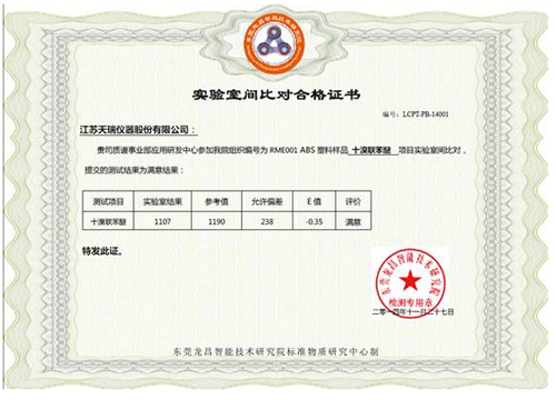附录2:实验室间比对合格证书(多溴联苯醚)