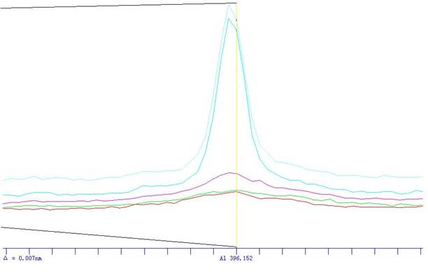 根据ICP软件谱线库提供所有元素不同谱线,首先选择被测元素灵敏度高的谱线,其次考虑不受样品基体及被测元素相互之间干扰小的谱线的原则,选择分析线如下。