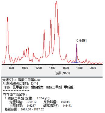 通过手动或自动进样方式将待测的车用汽油样品注入特定光程的样品池中,以空池为背景测量其红外光谱吸收图,根据非常规添加物的红外光谱特征对其进行定性识别,并根据其特征光谱的吸光度值和建立的校正曲线对其含量进行测定。如特征光谱谱带的吸光度超过2.0AU,可将样品用混合溶剂稀释合理倍数后重新测量。