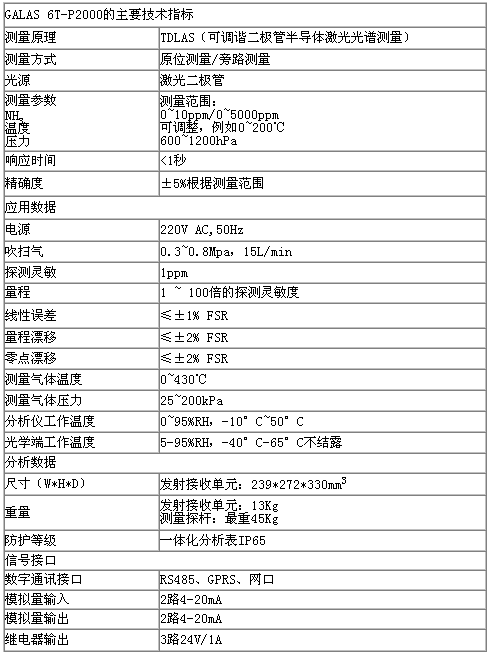 GALAS 6T-P2000激光气体分析仪由于采用了激光半导体二极管吸收光谱(TDLAS)技术,从根本上解决了采样预处理带来的诸如响应滞后、维护频繁、易堵易漏、易损件和运行费用高等各种问题,并具有如下特点: