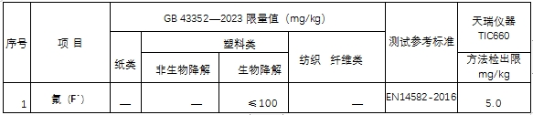 表2.氟(F-)限量值与检出限一览表