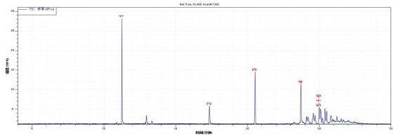 图14. 6种邻苯二甲酸酯标准物质总离子流色谱图