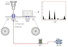 仪器以恒定的工况流量将空气吸入颗粒物切割器中,以PM2.5为例,动力学直径在2.5um附近及以下的颗粒污染物进入到仪器的富集系统中。经过一段时间的富集后,富集系统自动切换成β射线分析系统,利用β射线的衰减与颗粒物的质量浓度成指数的关系,对颗粒物的质量浓度进行分析。然后卷膜系统地将富集有空气颗粒物的滤纸移动到X射线荧光分析系统,分别利用X射线荧光的能量和强度对颗粒物中的元素成分进行定性和定量的分析。