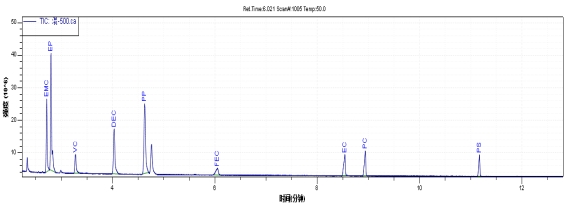 GC-MS6800测试锂电池电解液中碳酸酯类有机物含量
