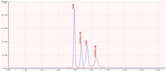 6.2 6种含氯苯酚标准混合溶液总离子流监测图(TIC):