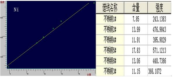 4. 不锈钢中Ni的工作谱图与相关数据