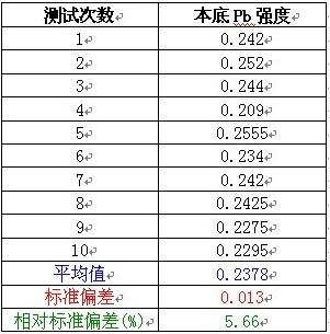 本底多次测量的平均值及相对标准偏差: