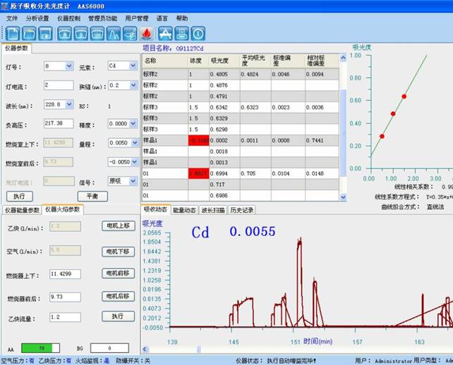 试料用盐酸和过氧化氢溶解,于原子吸收光谱仪波长228.8 nm处,以空气-乙炔贫燃火焰进行镉含量的测定。