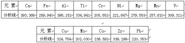 根据ICP软件谱线库提供所有元素不同谱线,首先选择被测元素灵敏度高的谱线,其次考虑不受样品基体及被测元素相互之间干扰小的谱线的原则,选择分析线如下。
