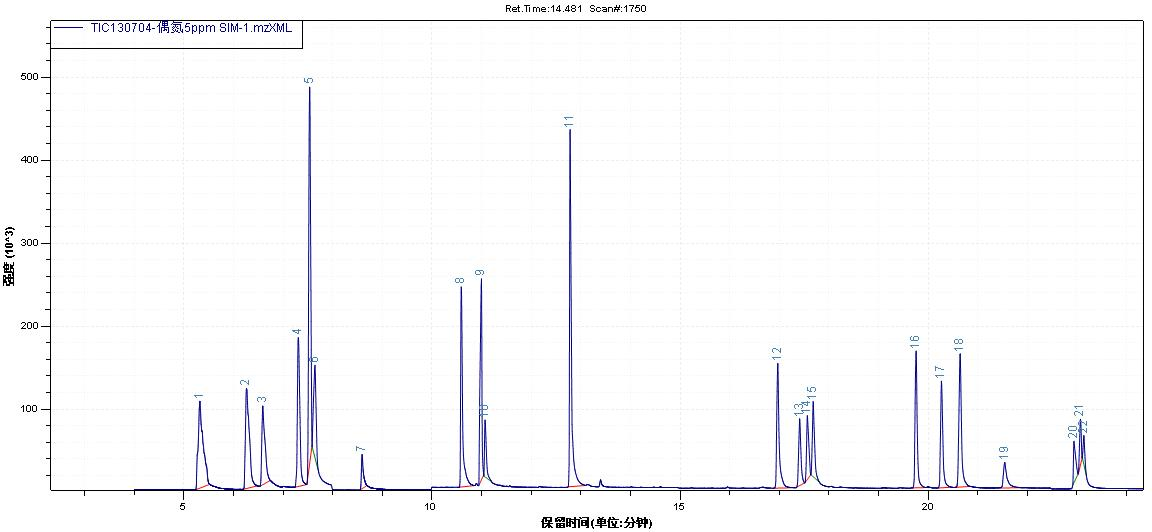 纺织品中23种偶氮染料的测试TIC图