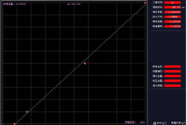 (A道线性方程:Y=875.144*X-17.003);(A道线性值:0.99916)见图1