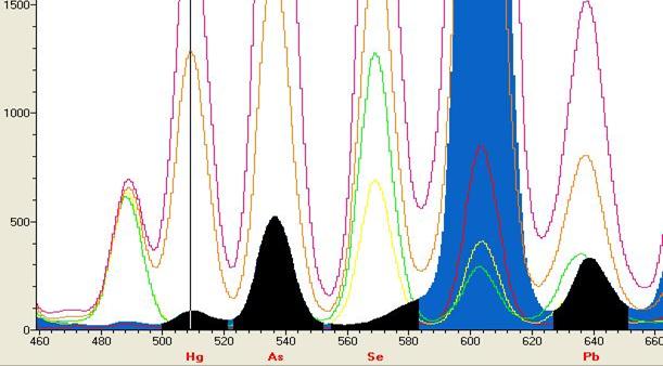 Pb的图谱(虚谱表示不同含量的谱峰)