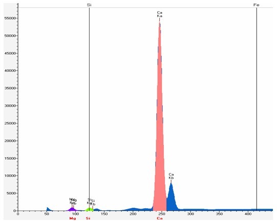 以下使用EDX 3600B型对白云石国标样GBW07216A实际测试的所得的谱图,工作曲线等相关数据: