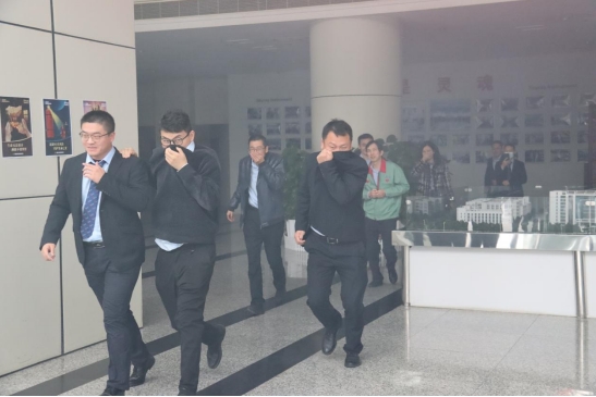 本次演练由公司总经理应刚担任总指挥。演练共设置了警械疏散组、通讯联络组、抢修抢险组、物资供应组、医疗救援组五个组。下午2点,各小组准备完毕后,演练正式开始。根据演练预案,公司四楼仓库发生了火灾,刹那间烟雾弥漫。火灾报警系统的警报声骤然响起,大楼内全体员工听闻报警声后迅速切断电源,在各部门负责人的组织下,沿着大楼楼梯向楼下跑去,迅速逃离火场。整个过程井然有序,五分钟的时间,大楼内工作人员全部逃离火灾现场,接着参加在公司门口空地举行的灭火演练。